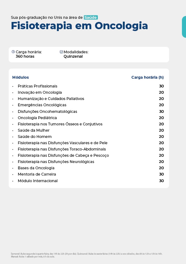 Graduados em fisioterapia que queiram fortalecer seus conhecimentos para o exercício profissional se especializando na área de oncologia.