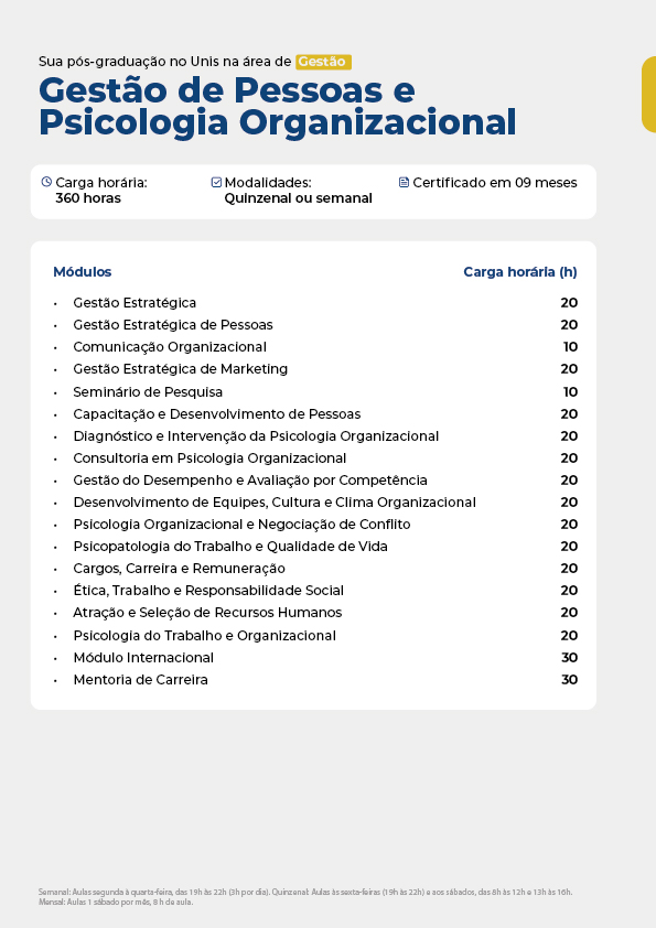 Para formarmos o profissional com essas habilidades, reunimos profissionais com prática de mercado e acadêmicos para montar uma especialização que tivesse, além dos conhecimentos necessários e atuais, mentoria de carreira e módulo internacional e muita aula prática para que o você tenha plenas condições de transformar a sua carreira, mudar de vida e atuar até internacionalmente.
